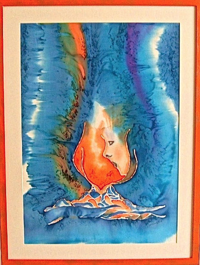 Droom, geschilderd op zijde, ingelijst, 75 cm. x 50 cm. 350,00 euro